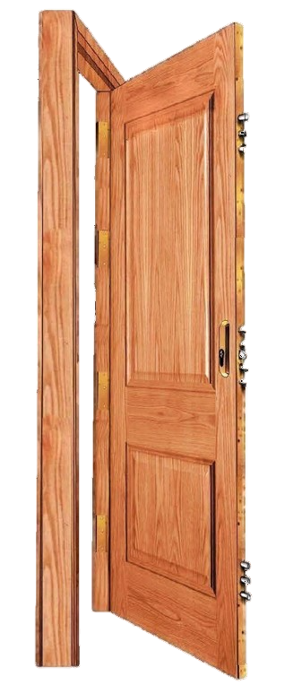 - Interior compuesto por aglomerado y enmarcado por cerco de pino, dos chapas de acero de 0'4 mm, tablero contrachapado de Sapelly-Pino o Roble. Otras maderas previa consulta. Molduras macizas de madera.